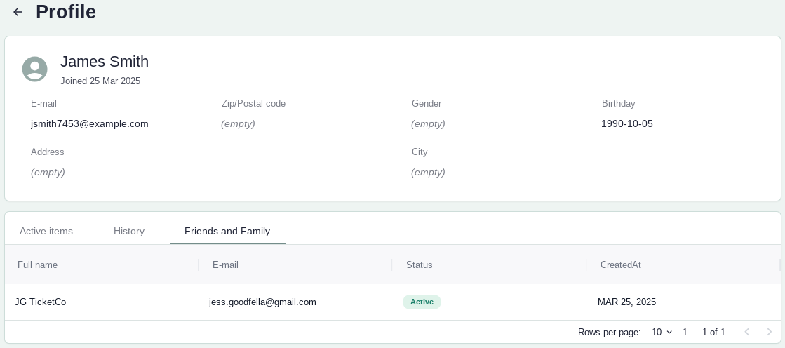 Once up and running with profiles, you might find that fans want to create a network around them so they can distribute tickets to the relevant ticket holders. If you have activated the Friends and Family toggle under Buyer profile settings, they will be able to invite family members and friends to join their network.