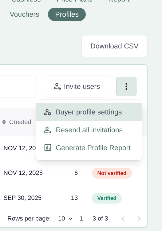 To generate a profile report, go into the Profiles tab and click on the three dots.